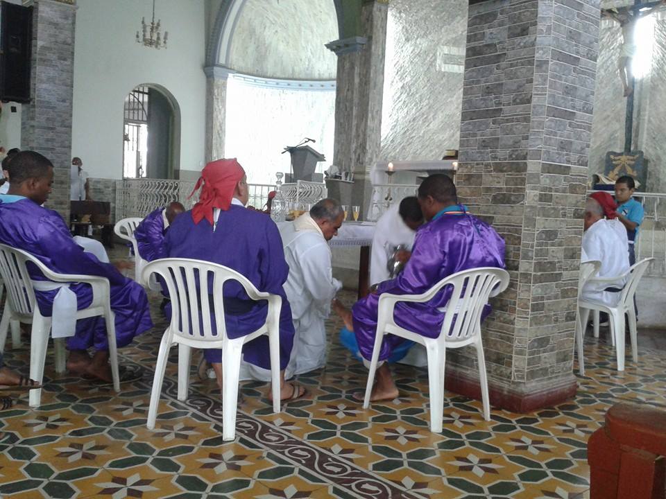 Sucesivamente, explicó el párroco de la Inmaculada Concepción de Puerto Tejada, el lavatorio de los pies que “tiene el mismo significado de la Eucaristía con una perspectiva diferente. Jesús – como un siervo – lava los pies a Simón Pedro y a los otros once discípulos. Con este gesto profético expresa el sentido de su vida y su pasión, como servicio a Dios y a los demás…”