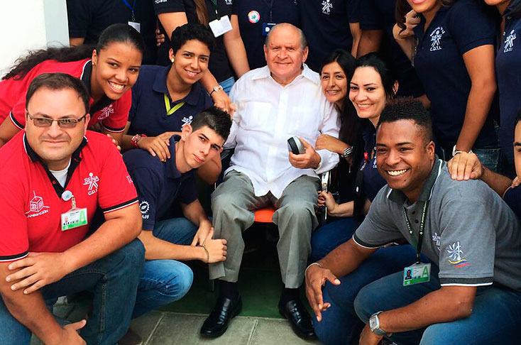 Allí tuvo la oportunidad de compartir con jóvenes aprendices de ese deprimido sector caleño, muchos de los cuales querían conocer al fundador de la entidad que los había arrebatado de la violencia en las calles.
