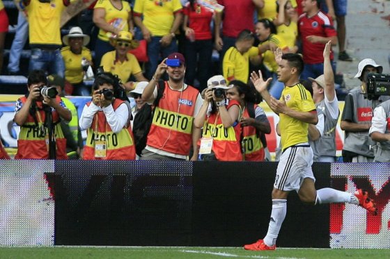 Pero esa jugada fue la que enderezó el camino de los dirigidos por Pékerman en la primera parte. Debido a que después lo intentaron con remates de media distancia de Guarín, hasta que nuevamente tras un cobro de pelota quieta se abrió el marcador: Cuadrado pateó un tiro de esquina, que cabeceó Cristian Zapata y finalmente se encontró con Teófilo Gutiérrez para marcar el primer tanto del partido al minuto 35.