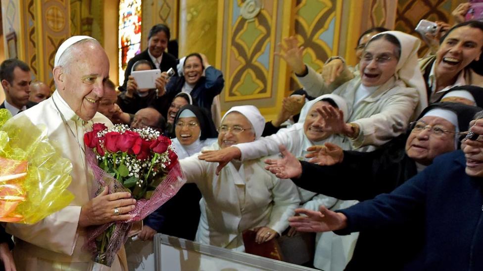 La religiosa dice estar asombrada por la reverencia del papa. “Cuando veo a Francisco hacer esto en las iglesias y santuarios del mundo, pienso que está honrando a su madre allí donde va”.