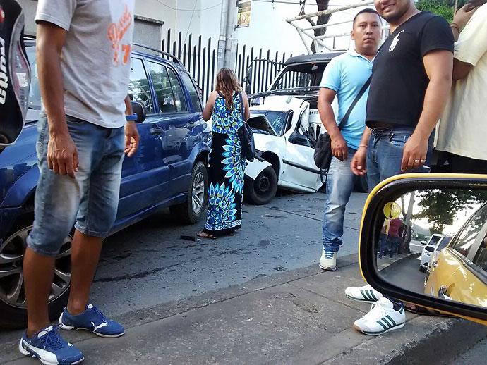 Ocho personas entre quienes se encuentran tres menores resultaron heridas durante un accidente que comprometió a varios vehículos algunos de ellos destruidos parcialmente.