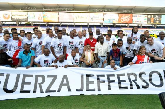 En la emotiva jornada el exportero del América de Cali, Alexis Viera (quien el año pasado también fue víctima de un robo y la movilidad de sus articulaciones quedaron comprometidas), se llevó muchos aplausos porque desde el comienzo hasta el final del evento acompañó a Jefferson. Además el ‘Pulpo’ realizó el saque de honor.