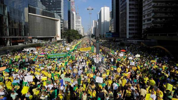 Unas 100.000 personas se congregaron ante el Congreso Nacional en Brasilia y manifestaron su respaldo al juicio político que la oposición promueve contra la presidenta Dilma Rousseff, quien fue objeto de multitudinarias protestas en todo el país.