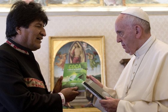 Morales, que defiende la despenalización de la hoja de coca cuyo uso forma parte de las tradiciones de los indígenas andinos, le regaló al papa tres libros sobre los beneficios de la coca, además de recomendarle tomarla.