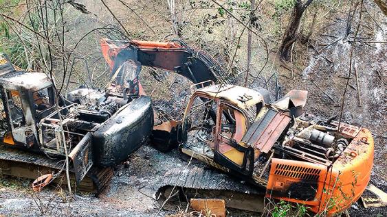 En la segunda parte de la operación contra la red de minería ilegal que secó el río Sambingo en el Macizo Colombiano al sur del Cauca, la Fuerza Pública irrumpió en las minas y destruyó 25 retroexcavadoras, una draga, 15 motobombas, 5 clasificadoras y un entable, equipos que están avaluados aproximadamente en $6 mil millones.