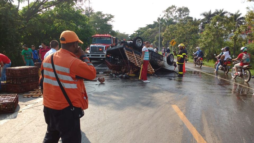 El accidente causó un herido que fue trasladado al Hospital Piloto de Jamundí para su valoración médica y el vehículo automotor transportaba gallinas ponedoras procedentes de Caloto.