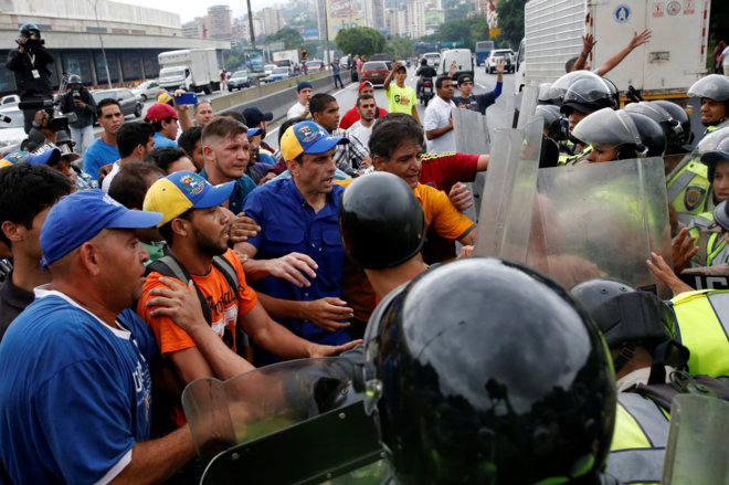 Capriles se encontraba en la principal autopista de Caracas que cruza toda la capital venezolana y ya había avanzado hasta los límites del municipio Libertador, donde se ubica la sede del Consejo Nacional Electoral (CNE), un territorio que en el que gobierna el alcalde chavista Jorge Rodríguez.