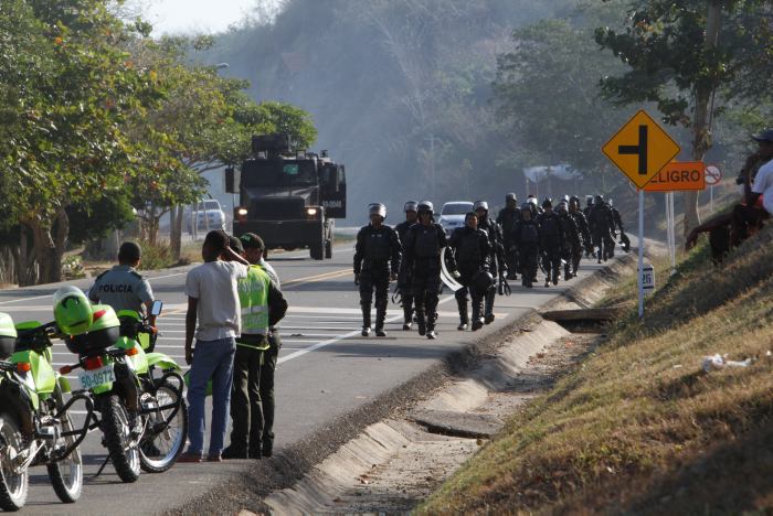 Los enfrentamientos entre las comunidades indígenas y la Policía se re gistraron en el sector de La Delfina, sobre el kilómetro 43 de la vía que conecta a Buenaventura con el resto del país, pero la Policía ejerce pleno control sobre este corredor vial.