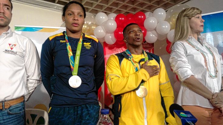 Con la medalla al mérito vallecaucano en grado Cruz de Comendador, fueron condecorados Óscar Figueroa, medalla de oro en el levantamiento de pesas y la judoca Yuri Alvear, medalla de plata en Río 2016, luego de su llegada este lunes al aeropuerto internacional Alfonso Bonilla Aragón, en el municipio de Palmira, que sirve a Cali.