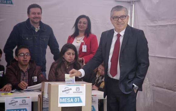 «No será la lluvia, no serán los rayos los que nos van a alejar a los colombianos de esta oportunidad de apoyar el fin de la guerra y empezar a construir la paz», aseguró Gaviria Trujillo, quien ejerció su derecho al voto en la Plaza de Bolívar de Bogotá.