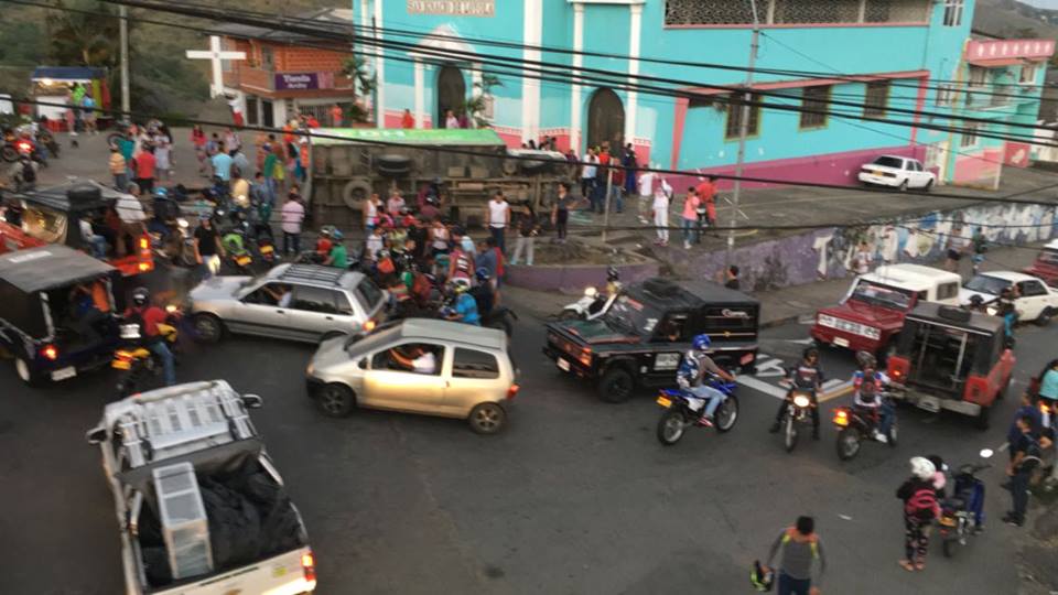 Según reporte de los Bomberos de la capital Vallecaucana, un furgón chocó contra un vehículo particular, lo que originó su volcamiento. En esta acción fueron arrollados dos motociclistas y un peatón.