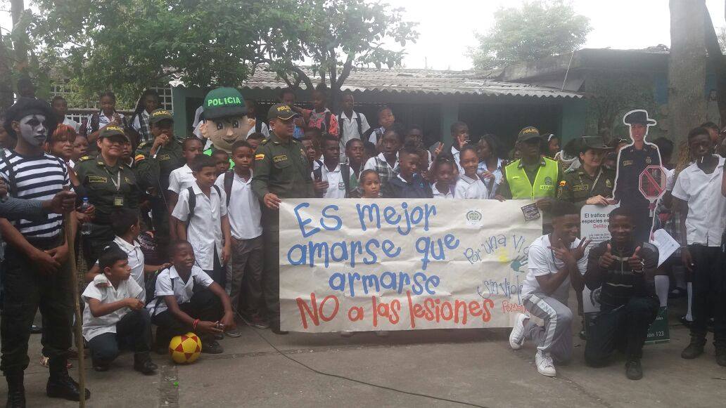 Las diferentes especialidades de la Policía Nacional tales como SEPRO, GINAD, PRECI, COEST, AUXPO, GAULA, GINCO y Estación de Policía, en el municipio de Puerto Tejada realizaron este martes una campaña preventiva denominada «Amarse es mejor que Armarse», donde a través de una obra teatral, entrega de volantes y mensajes alusivos a la sana convivencia; se invitó a la comunidad educativa del colegio José Hilario López, y Sagrado Corazón de Jesús a generar entornos escolares en convivencia y en paz, a no caer en el flagelo del pandillismo y a decir no frente al consumo de las sustancias psicoactivas y prevenir las lesiones.