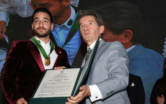 Juan Luis Londoño Arias conocido en el mundo musical como Maluma recibió este jueves 6 de abril, del gobernador de Antioquia, Luis Perez Gutiérrez, la condecoración del Escudo de Oro; la insignias más importantes del departamento, el cual lo declara como «hijo ilustre de Antioquia».