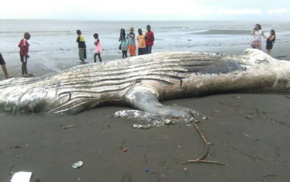 Los habitantes del corregimiento de La Bocana, cerca de la zona urbana de Buenaventura, quedaron sorprendidos este sábado luego de ver que además de los desechos de las zonas de bajamar, la marea arrastró hasta sus playas el cadáver de una ballena jorobada.