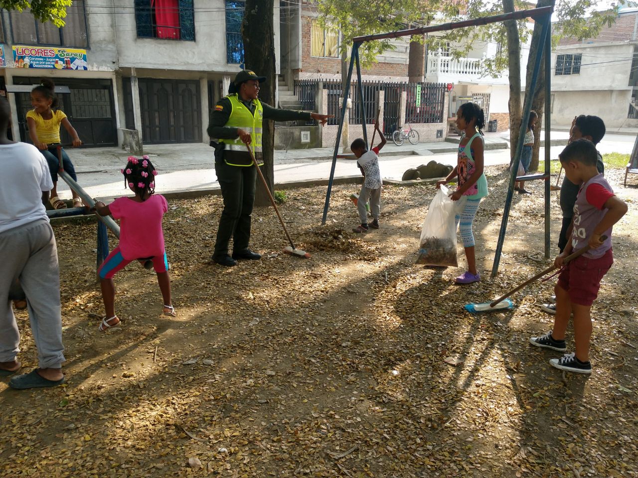 La Policía de Infancia y Adolescencia a través de su Jornada Escolar Complementaria, realizó en el Municipio de Puerto Tejada jornadas de aseo y ornato en el parque del barrio Villa Clarita al norte de la ciudad.