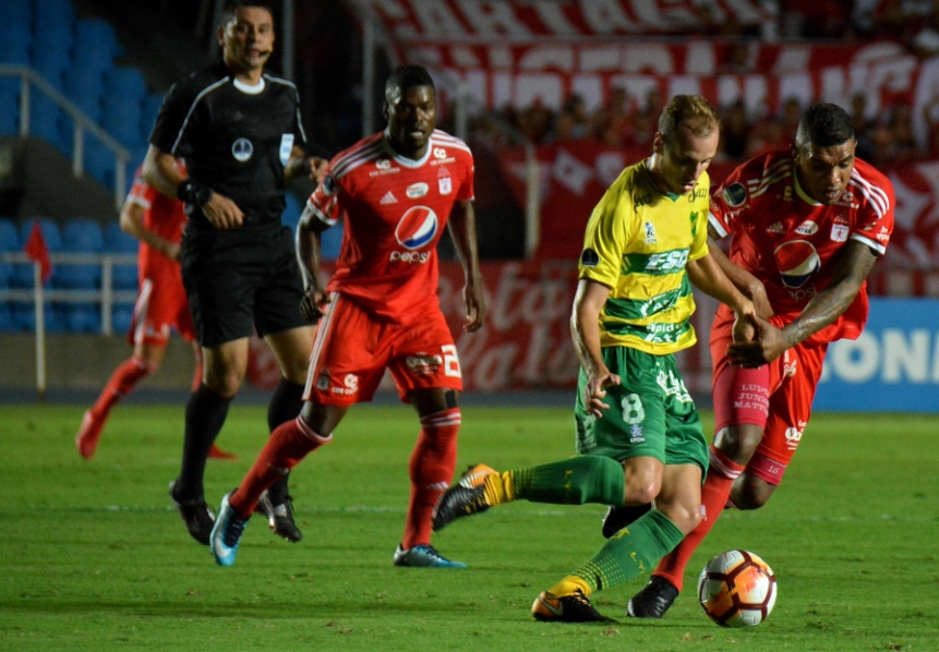 0. América: Carlos Bejarano; Juan Camilo Angulo, Diego Herner, Anderson Plata, Iván Vélez; Elkin Blanco, Avimiled Rivas (m.67, Yamilson Rivera), Félix Micolta, Kevin Ramírez (m.53, Darío Botinelli); Cristian Dájome y Cristian Martínez Borja.
