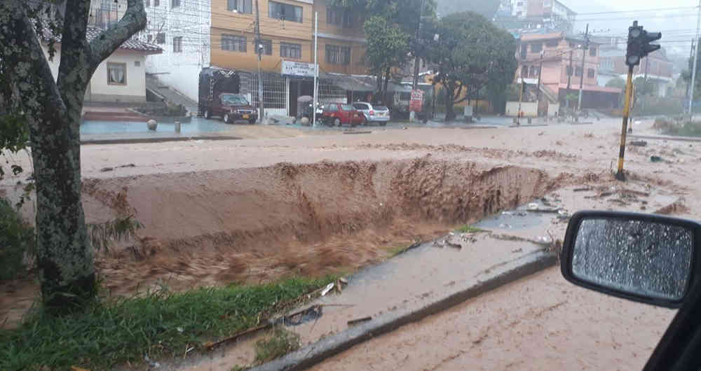 El caudal se desplazó con fuerza por las calles aledañas al centro turístico en el barrio Santa Teresita. En algunas vías de la ciudad el agua alcanza los 50 centímetros.