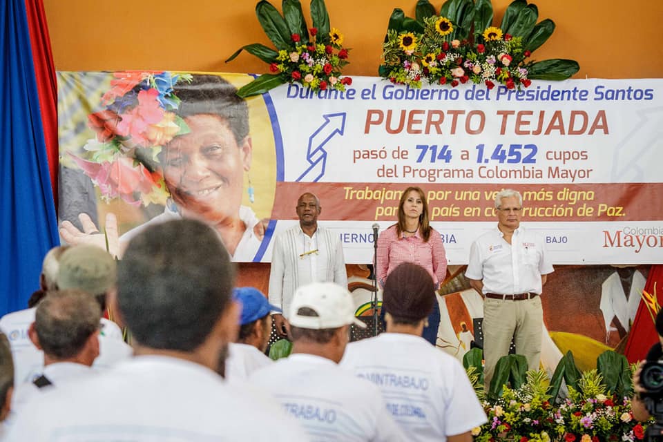 Durante el acto que tuvo lugar en el Centro de Recreación La Ceiba, al que asistieron altos representantes locales, beneficiarios antiguos y nuevos del programa Colombia Mayor, la Ministra del Trabajo, estuvo acompañada por el presidente del Consorcio Colombia Mayor, Juan Carlos López Castrillón.