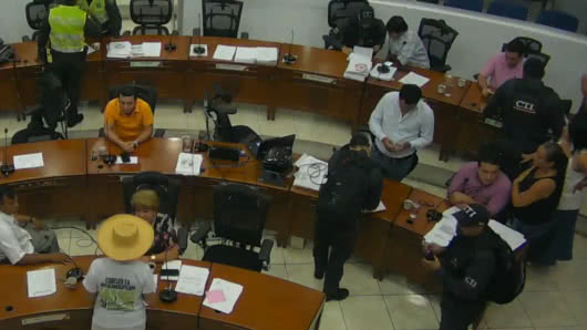 Los agentes de la Fiscalía se desplegaron por el recinto, sobre los asientos de 8 concejales, y empezaron a leerles sus derechos y los cargos por los que estaban siendo capturados. Todo quedó registrado porque los micrófonos estaban abiertos, según se escucha en un video que fue divulgado por el diario local La Nación.