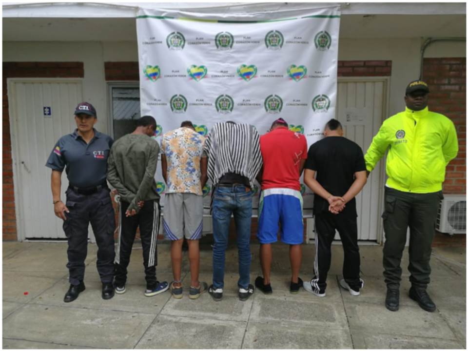 Los capturados por las autoridades policiales y de Fiscalía fueron identificados como: Jhonatan Rivera Gómez alias conena,Juan David Ibañez Gil alias Mou,Dairo Lasso Ambuila alias Matapato, Jesús Marino Diaz Carabalí alias Pichu,Jonny Alexander Mina Fuquen alias Fuque y Ediel Manuel Gómez Carabalí.