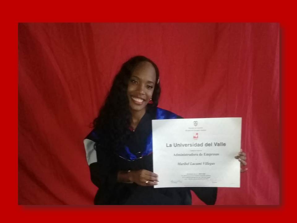 Queremos felicitar muy efusivamente y destacar el título profesional recibido por Maribel Lucumí Villegas quien ocupó el primer puesto en Administración de Empresas en la ceremonia de graduación conferido por la Universidad del Valle.