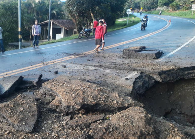 La colocación de una carga explosiva en una de las alcantarillas de este tramo vial fue destruida llevándose consigo parte de la carretera.