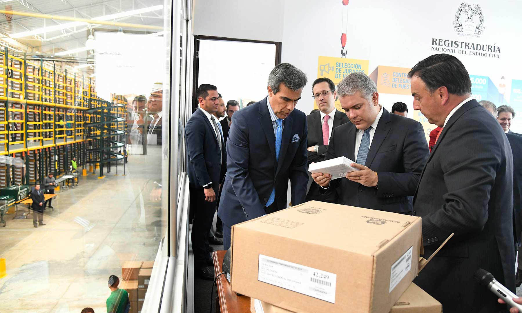 El jefe del Estado, Iván Duque, visitó, en compañía de la ministra del Interior, Nancy Patricia Gutiérrez, el centro de acopio nacional de la Registraduría Nacional en donde se tiene el material electoral que se usará en las más de 3.000 elecciones que se cumplen el 27 de octubre.