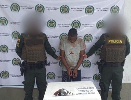 Gracias a la reacción de los uniformados , se logró la oportuna captura en flagrancia el presunto causante de este hecho, a quien se le halló en su poder un arma de fuego tipo revolver, el cual es entregado bajo cadena de custodia a la policía judicial, como objeto de investigación dentro de este caso.