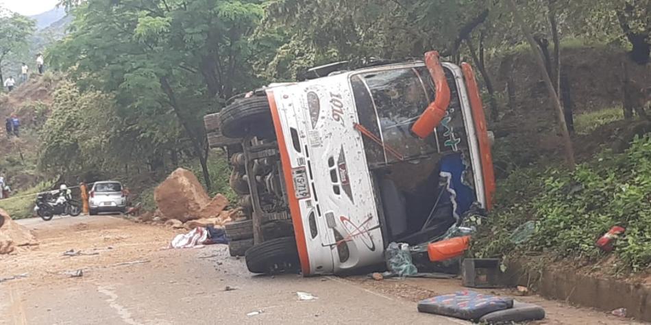 Una persona fallecida y 16 más heridas es el saldo de un accidente ocasionado por el desprendimiento de una roca, que impactó contra un bus que transitaba por la vía Ortega-Chaparral (Tolima).