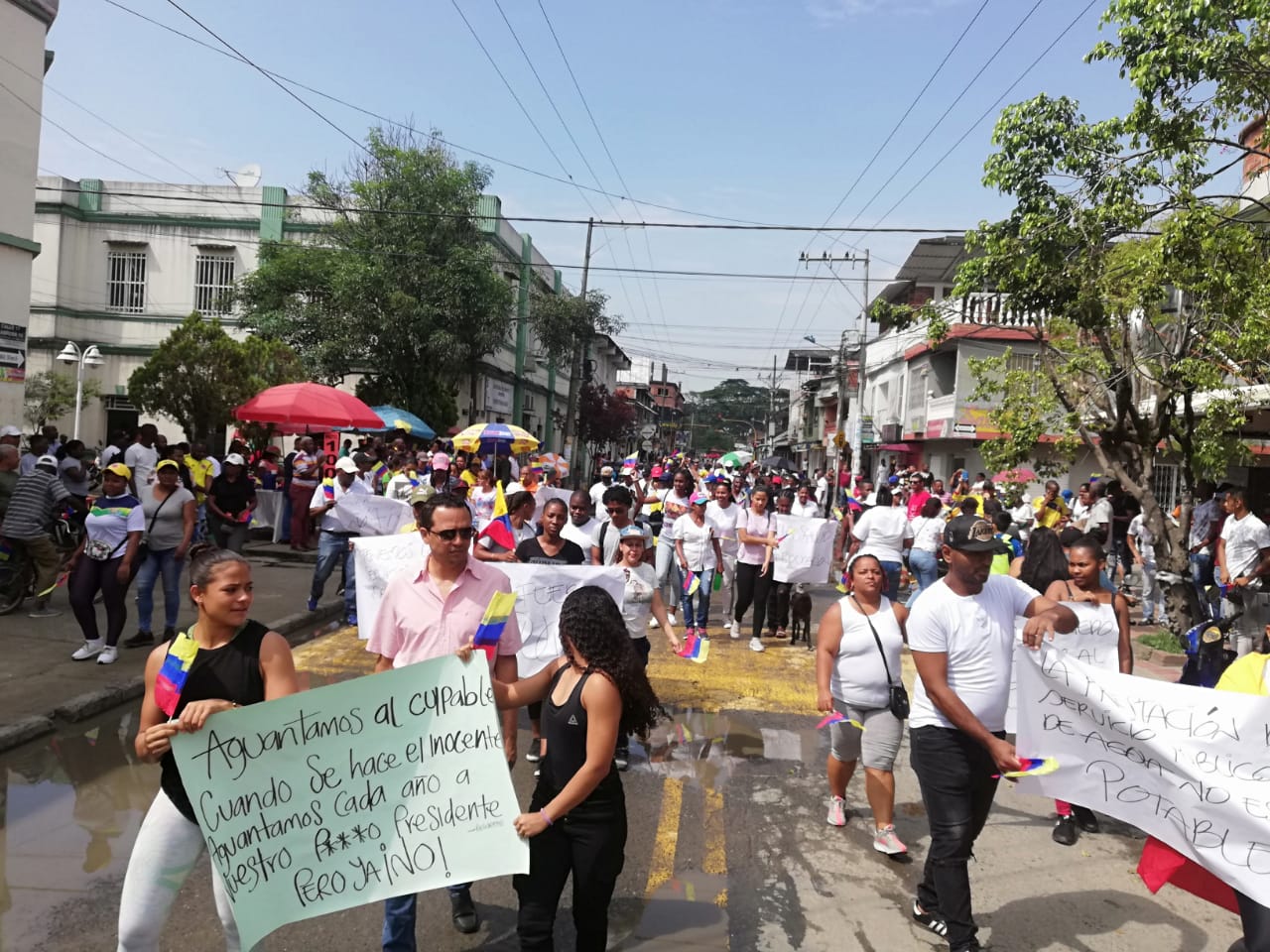 Con carteles y arengas las organizaciones convocantes del paro han expuesto en este recorrido las razones principales para convocar a movilización que se realiza, además con una restricción en la prestación del servicio de agua por daños en la bocatoma del acueducto y planta de tratamiento del sistema que opera Afrocaucana de Aguas del caudal del río Guengüé en Corinto.