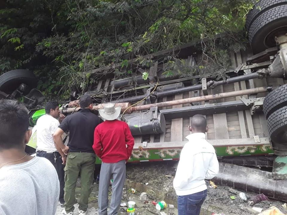 Cuando el vehículo de transporte de carga y pasajeros conocido como «Fuego Verde», transitaba por ese sector, al parecer sufrió una falla mecánica en su sistema de frenos, lo que ocasionó un volcamiento.