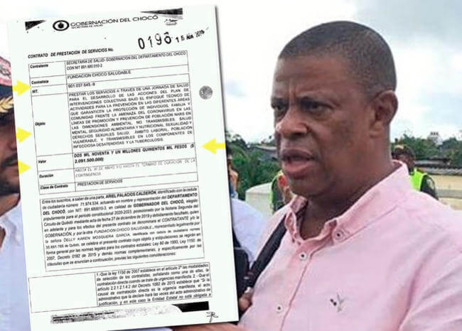 El primero firmó un contrato el 15 de abril por 2.000 millones de pesos para capacitaciones en torno al coronavirus. Este contrato también quedó en suspenso, entre otras cosas por desconocer que las jornadas de salud contempladas eran una violación a la cuarentena decretada por el Gobierno nacional y por seleccionar a la Fundación Chocó Saludable, un contratista que no tendría la idoneidad.