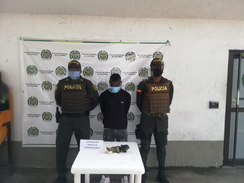 El sujeto fue arrestado gracias a las cámaras de video seguridad que existen en el sector y en las cuales fue visto al parecer intentar en varias ocasiones arrojar el mencionado alucinógeno, lo que permitió en una acción de registro y control incautar la sustancia sicoactiva y capturarle, siendo puesto a disposición de la autoridad competente por el delito de tráfico fabricación o porte de estupefaciente .