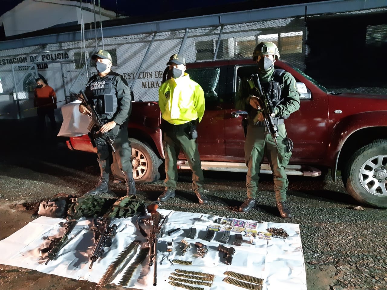 Entre los elementos incautados se encuentran : 1 Ametralladora calibre 7.62,2 Fusiles 5.56,1 Pistola,2 Revólver,1 Granada,4 Cargadores para fusil,1 Cargador para pistola,2 Chalecos arnés,1 Cinta de cartuchos para ametralladora y una Camioneta incautada la cual figura como hurtada desde el 3 de noviembre.
