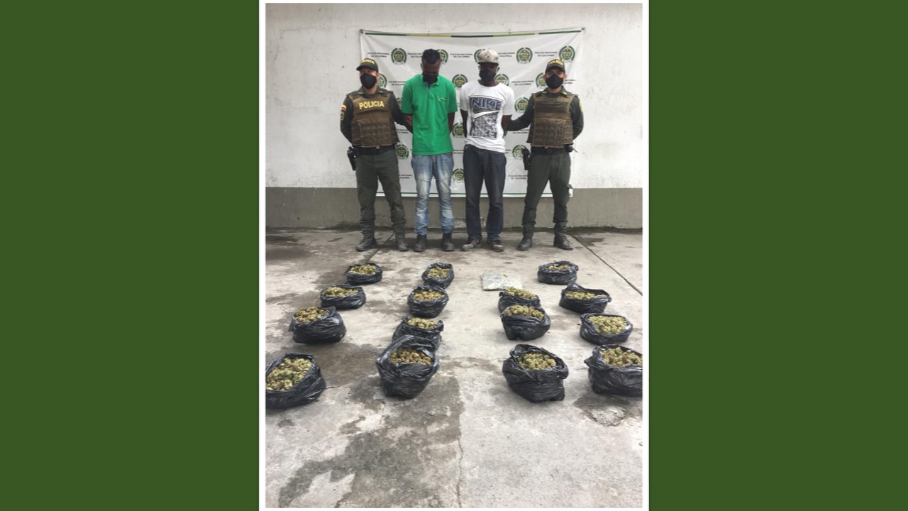 En el sector de la Glorieta de la variante de la carretera Panamericana en el sector del cruce hacia la vereda de Los Bancos fueron capturados en flagrancia dos hombres de 44 y 25 años residentes en Villarica y a quienes se les incautó 15 kilos de marihuana.