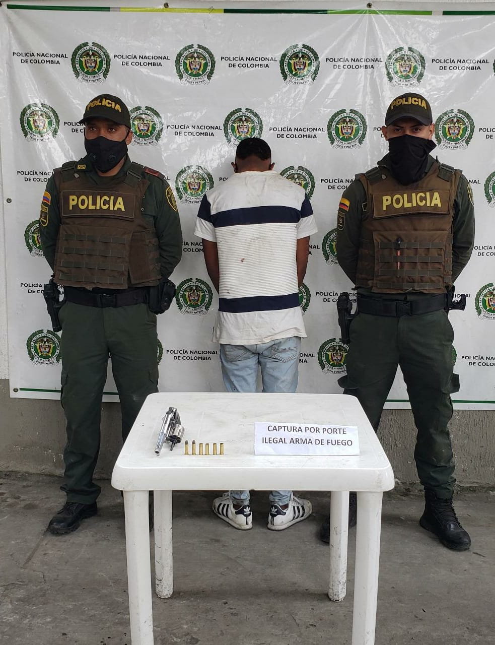 Tras percatarse por las cámaras de seguridad de un enfrentamientos entre integrantes de las Pandillas “Los Peña” y “Los Dandy ” en el barrio Barrio Antonio Nariño, una patrulla de la Policía Nacional interviene logrando la aprehensión de un adolescente de 17 años residente en Villarica y al cual se le incauta un arma de fuego Tipo revólver calibre 38 milímetros .