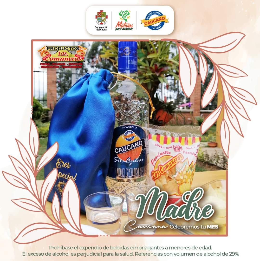 ¡Brindemos! celebremos junto a ella, en casa, #responsablemente con unos #aguardientes y con estos exquisitos y tradicionales acompañantes #CarantantaChirimía y #PapasLosComuneros que durante este mes vienen con tu #AguardienteCaucano #Tradicional o Sin #Azucar en las presentaciones de #Botella de 750ml y de #Garrafa de 1.750ml.