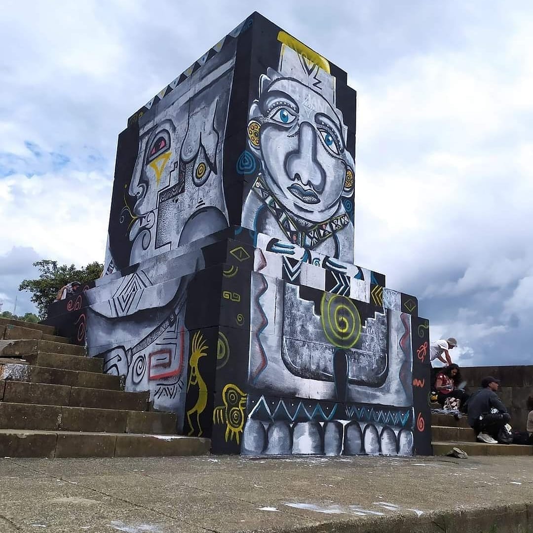 En un acto de «Reivindicación territorial» varios colectivos realizaron una intervención artística en la pirámide – morro de Tulcán, transformando el antiguo pedestal del monumento a Belalcázar en una simbología indígena.