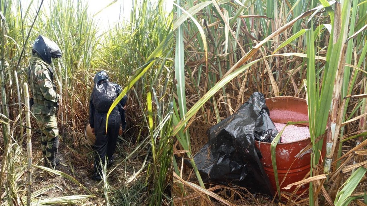 El hallazgo se dio en un cañaduzal una caneca al parecer con material explosivo tipo ANFO perteneciente a un grupo al margen de la ley y con el cual presumiblemente se tenía intenciones terroristas.