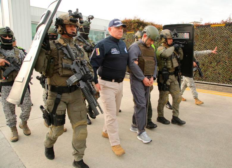En las imágenes conocidas este miércoles, el exjefe del Clan del Golfo que pasó más de tres décadas en los grupos armados ilegales, se encuentra sentado y con sus manos esposadas a bordo del avión que lo llevará a los Estados Unidos. El cual despegó del aeropuerto militar Catam en Bogotá. En el fondo, se ve a funcionarios de la Policía y de la Interpol.