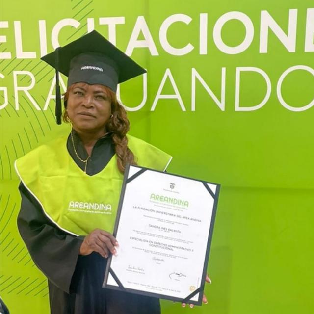 La Fundación Universitaria del Área Andina de Pereira concedió el grado de Especialización en Derecho Administrativo y Constitucional a la abogada y docente Sandra Inés Balanta, lo que la califica y distingue con amplios conocimientos en los aspectos más relevantes de esta área del derecho.