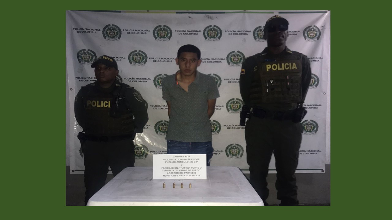 Un joven de 20 años identificado como Hader Andrés Mejía Ulpavi fue capturado en momentos que uniformados de la Policía Nacional adscritos a la Estación de Puerto Tejada pertenecientes al Modelo Nacional de Vigilancia Comunitaria por Cuadrantes (MNVCC) le realizaban una requisa por su aptitud sospechosa en este sector urbano se abalanzó sobre uno de los integrantes de la patrulla, golpeándole con un palo en una de sus extremidades causándole contusiones.