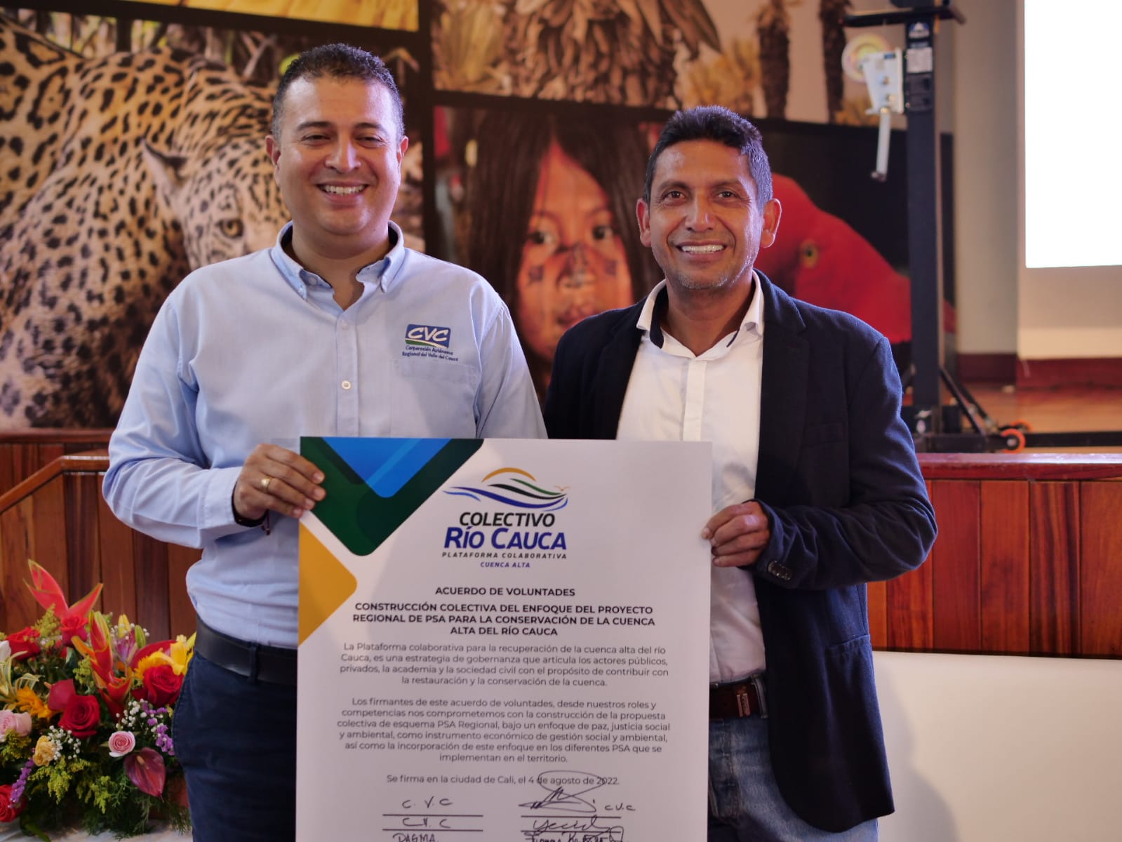 En el marco del evento se firmó el Acuerdo de Voluntades del colectivo Plataforma Colaborativa Cuenca Alta del Río Cauca, donde se refrendó la construcción colectiva del esquema de Pagos por Servicios Ambientales regional, bajo un enfoque de Paz, Justicia social y fortalecimiento ambiental como instrumento económico de gestión social y ambiental, así como la incorporación de este enfoque en los diferentes PSA que se implementan en los territorios.