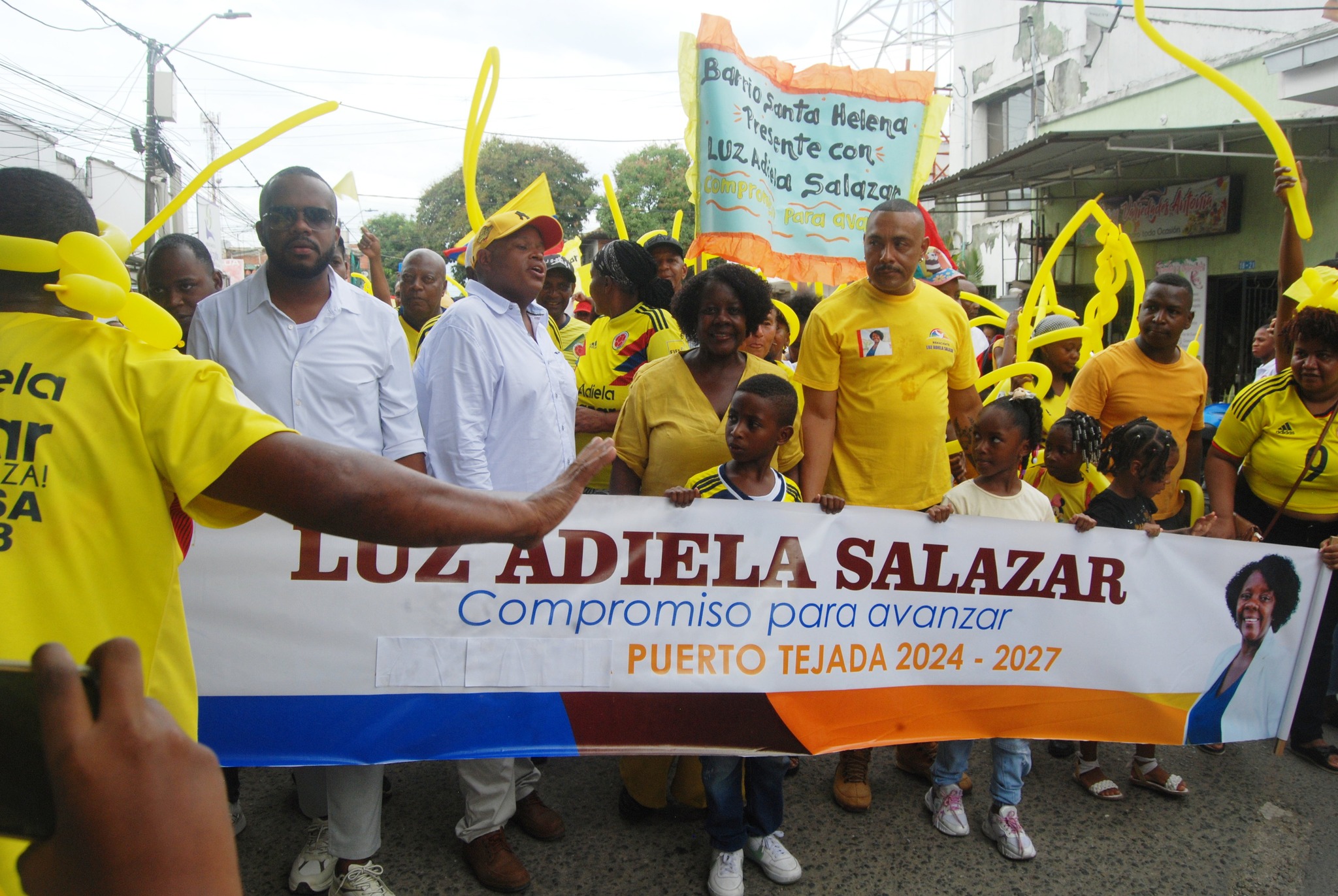 La economista Luz Adiela Salazar Gómez en medio una masiva marcha que le acompañó hasta la sede de Registraduría Municipal del Estado Civil de Puerto Tejada, inscribió su candidatura a la alcaldía para reemplazar a Dagoberto Domínguez Caicedo a partir del primero de enero del 2024.