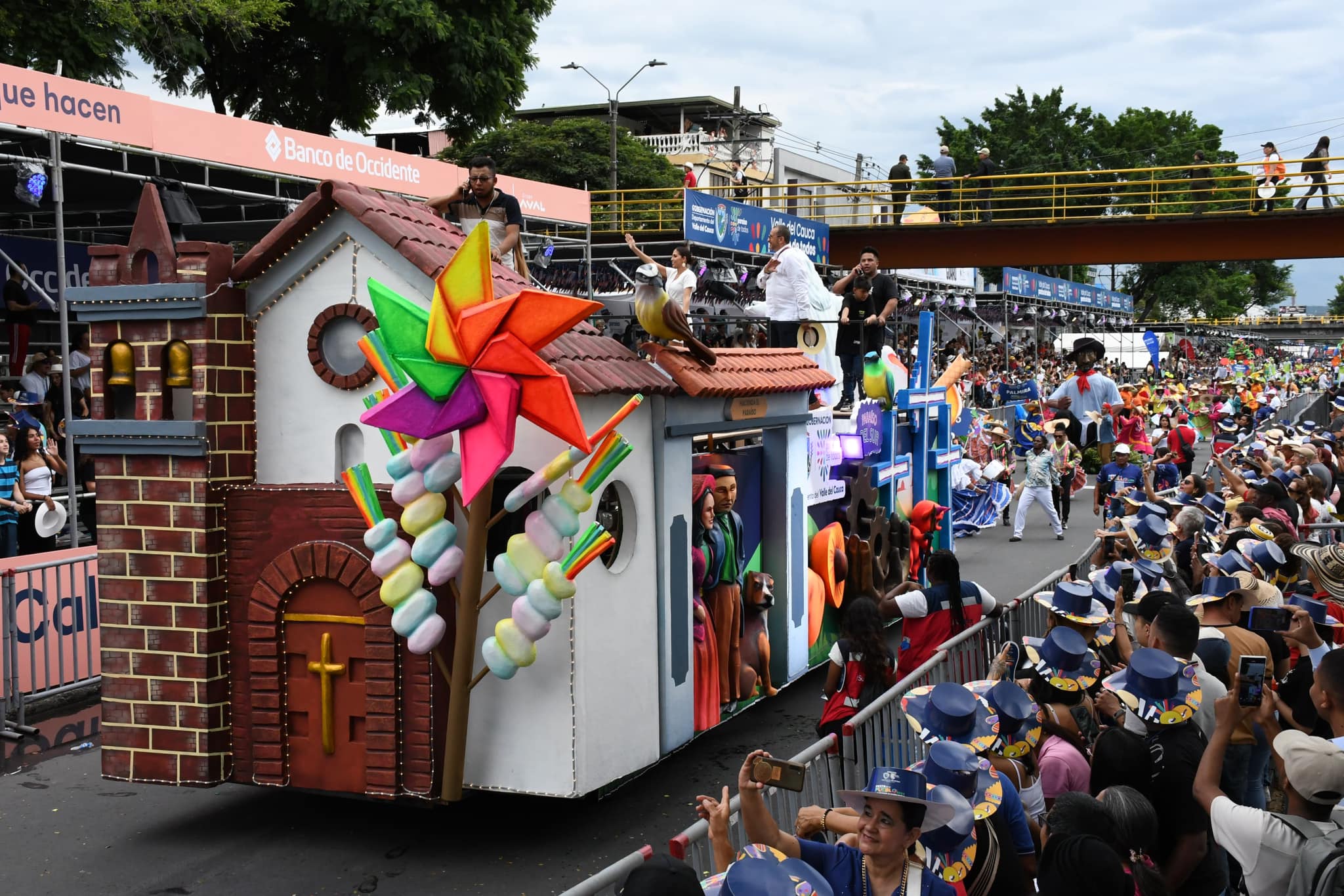 Fueron 1,5 kilómetros de derroche en el que participaron 2.000 artistas, 50 artesanos y 11 carrozas, en los que la Gobernación quiso mostrar toda la riqueza de ritmos musicales en el Valle del Cauca. «Precisamente, son 42 municipios representados cada uno por un ritmo distinto, ganado de las migraciones, de toda la mezcla de poblaciones que tenemos y es lo que queríamos exaltar», anotó Castrillón.