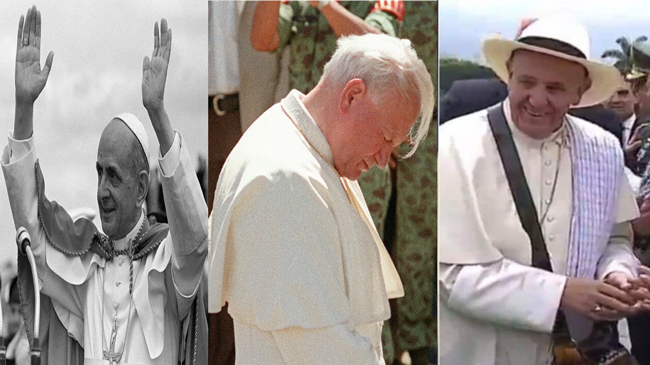 La primera visita Papal fue la de su Santidad Pablo VI quién permaneció en el país entre el 22 y 24 de agosto de 1968. Recibido por el Presidente Carlos Lleras Restrepo, oficio la misa Campal, en el parque Simón Bolivar, de Bogotá.