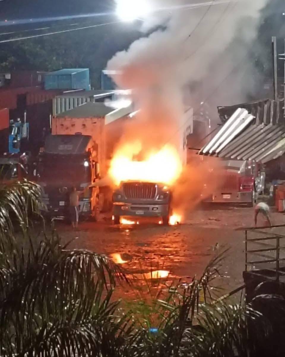 En la madrugada de este miércoles 16 de julio sujetos fuertemente armados interrumpieron el tránsito en esta importante carretera y luego de obligar a los motoristas descender de los automotores procedieron a incendiar los cabezotes de los mismos sin afectar la carga de hilos y llantas que se dirigían para exportación .